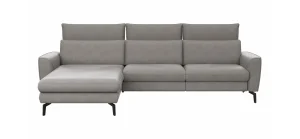 Ecksofa Felipa – Ecke links mit 2,5-Sitzer inkl. Kopfteil verstellbar, Leder, Grau