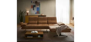 Ecksofa Lucero 2.0 – 2-Sitzer mit Longchair rechts inkl. Sitztiefenverstellung, Drehsitz und Sitztiefe verstellbar, Stoff, Cognac
