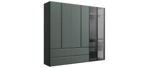 Drehtürenschrank Matera – BHT ca. 301x235x60 cm, Lack Matt, Muschelgrau, Griffe Coffee