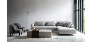 Ecksofa Comodo – 2-sitzer, Longchair rechts, Leder, Taupe