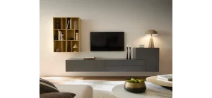 Wohnwand 3900 – inklusive Kamin und TV-Halterung, Lack, Schiefergrau