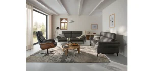 Sofa Atella – 2,5 Sitzer inkl. motorischem Sitzvorzug, Kopfteilverstellung, Leder, Anthrazit