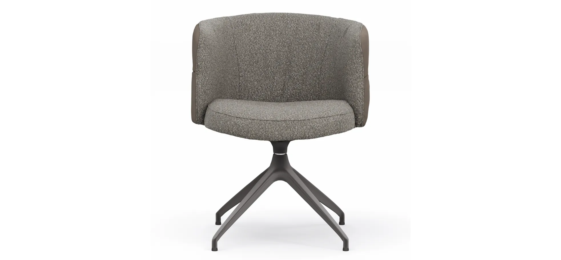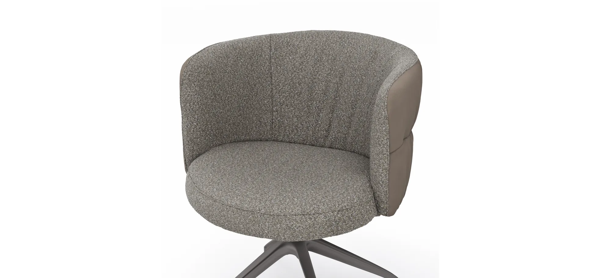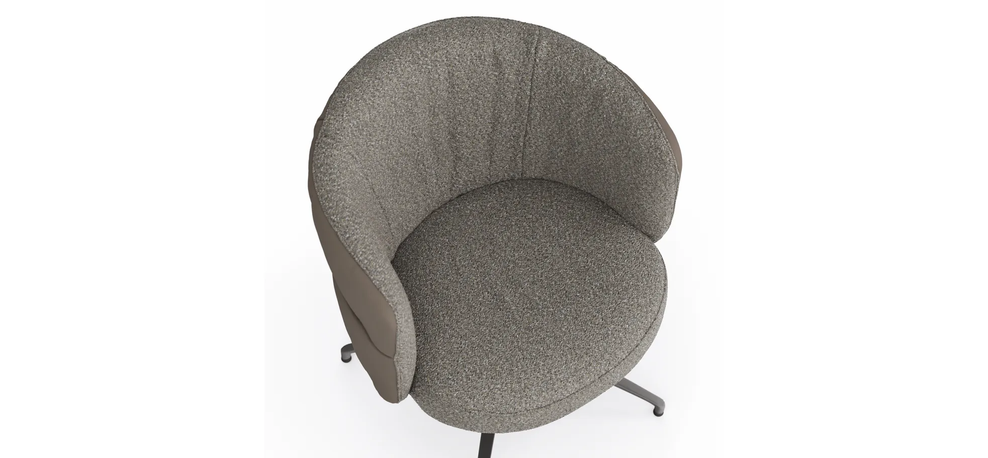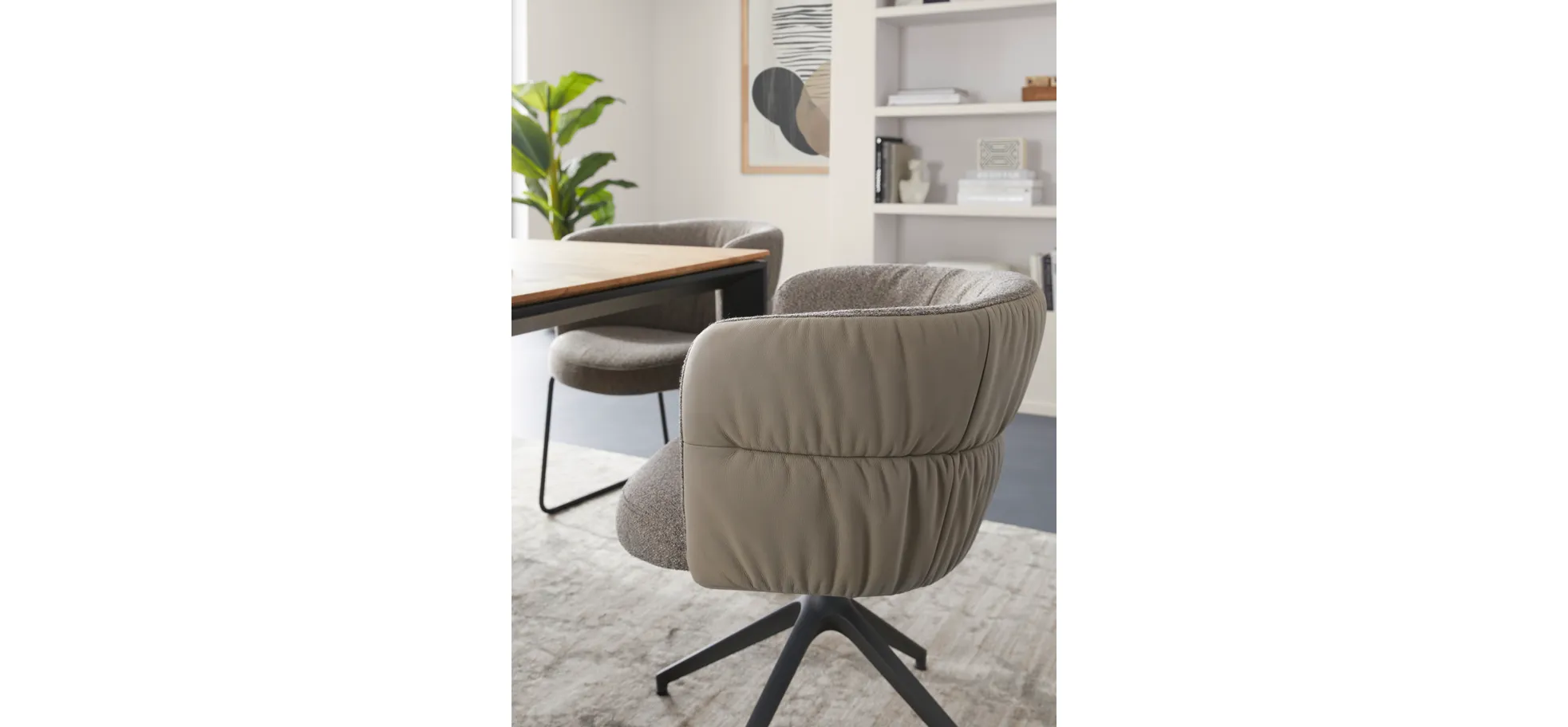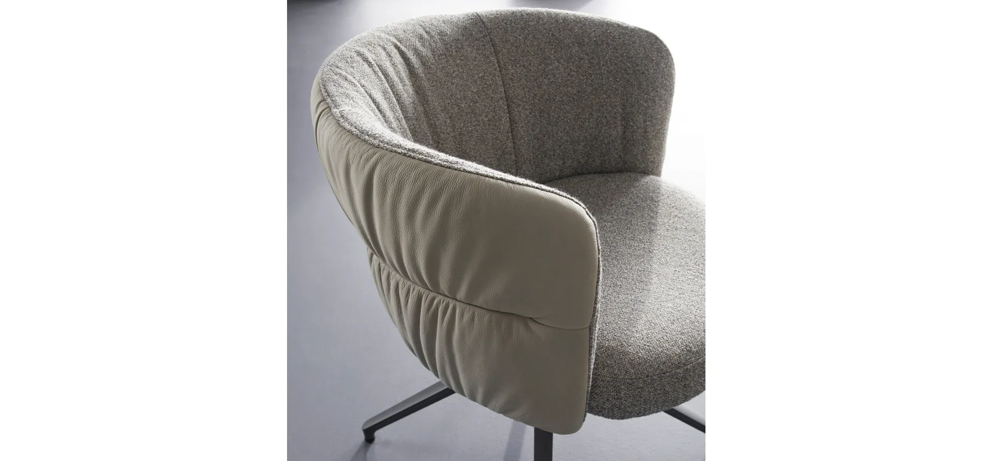 Armlehnstuhl Milana – drehbar, Leder Grau, Stoff Graubraun