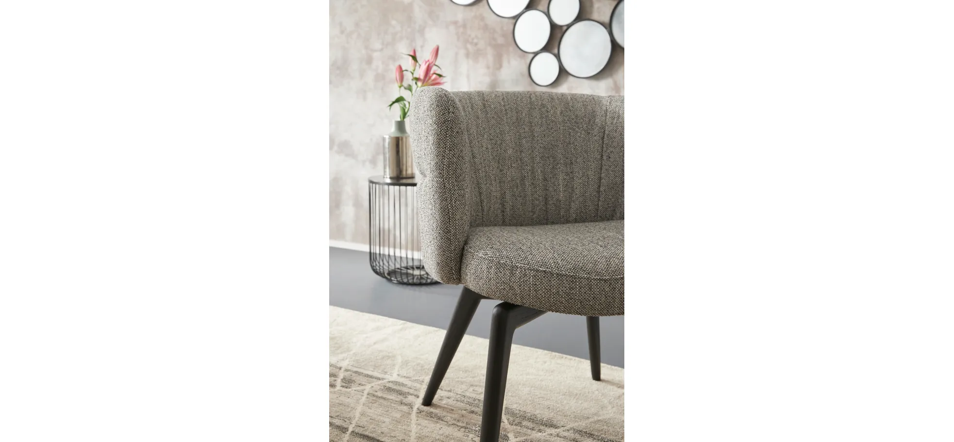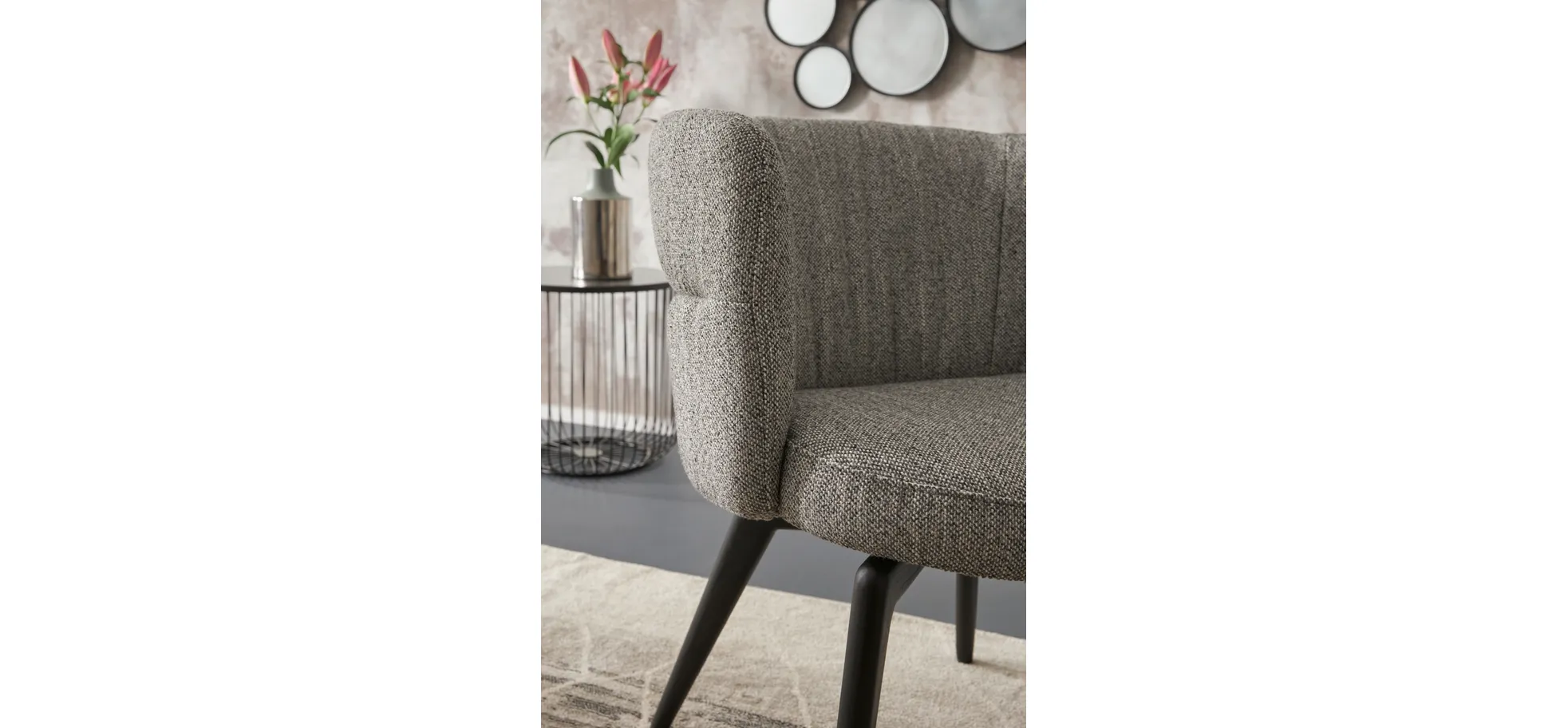 Erlebe den Komfort des Armlehnstuhls Milana von Global Select. Mit einer Sitzhöhe von ca. 49 cm bietet der Stuhl optimalen Sitzkomfort. Die robusten, aus massivem Eichenholz gefertigten Beine in elegantem Schwarz vereinen Stabilität und Stil. Der graue Stoffbezug und die Schaumstoffpolsterung von Sitz und Rückenlehne sorgen für ein angenehmes Sitzgefühl. Mit einer Belastbarkeit von ca. 120 kg ist der Stuhl sowohl für den täglichen Gebrauch als auch für besondere Anlässe geeignet. Das 4-Fuß-Gestell bietet zusätzliche Stabilität und verleiht deinem Raum eine moderne Eleganz.
