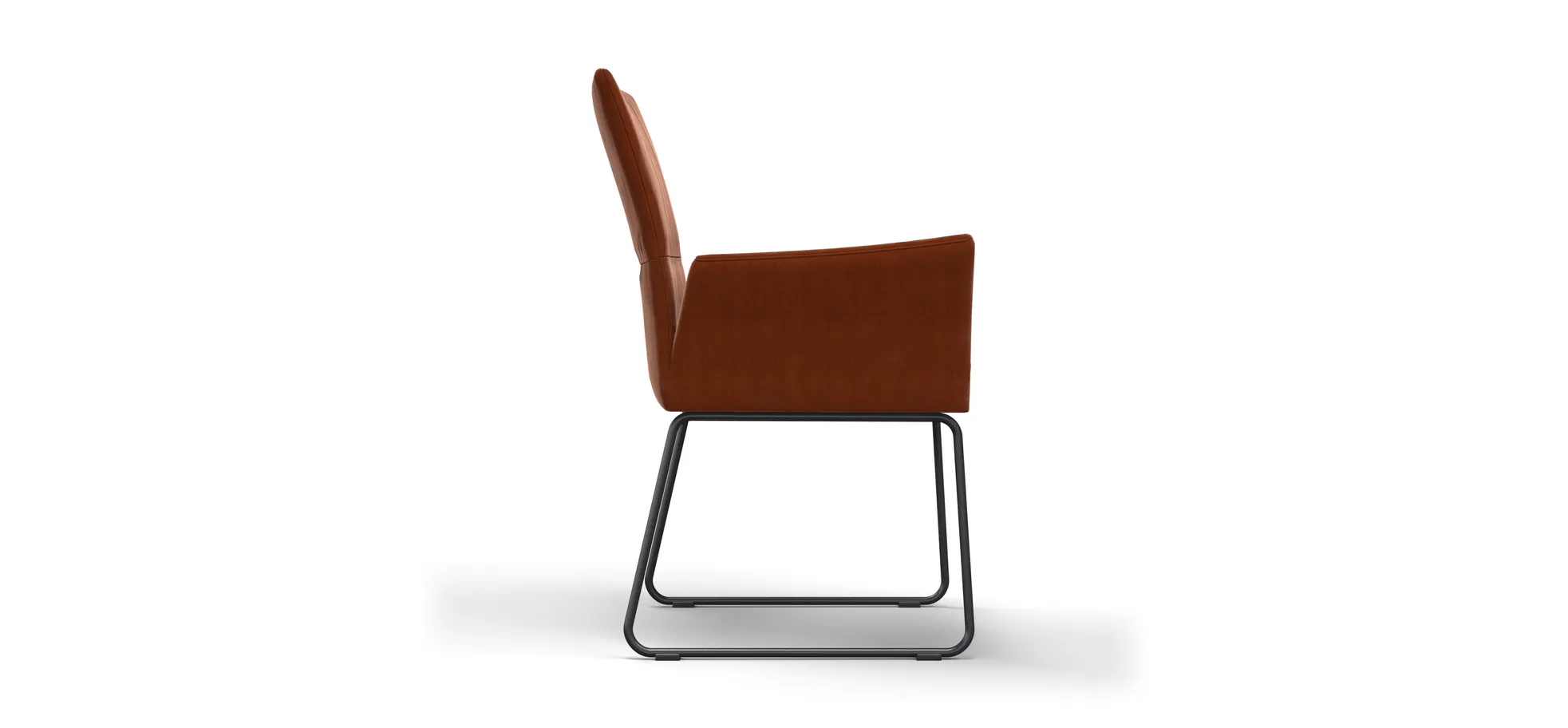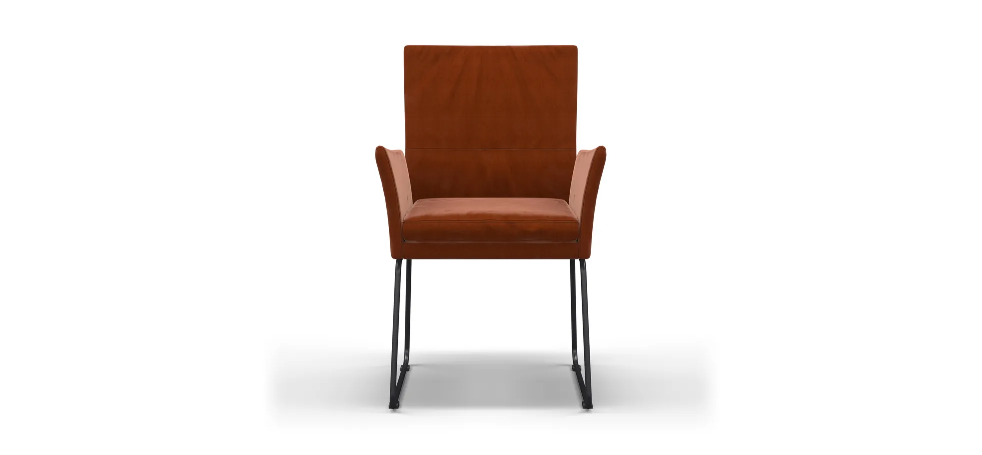 Der Armlehnstuhl Salamanca von Global Select beeindruckt durch sein elegantes Design und die einladende Rost-Farbgebung. Mit einer Belastbarkeit von ca. 120 kg bietet er stabilen Halt auf einem robusten Kufengestell aus schwarzem Metall. Der Sitz und die Rückenlehne aus hochwertigem Schaumstoff sorgen für außergewöhnlichen Komfort bei einer Sitzhöhe von ca. 49 cm. Dieser stilvolle Stuhl vereint Funktionalität und Ästhetik und fügt sich nahtlos in verschiedenste Wohnbereiche ein. Entdecke die perfekte Kombination aus modernem Design und bequemem Sitzgefühl.