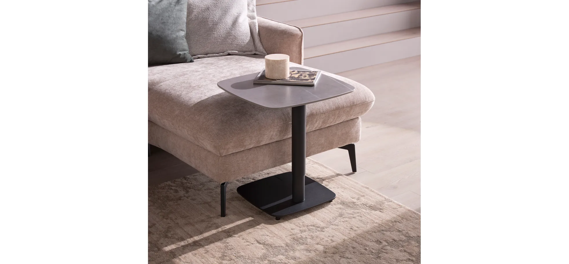 Der Beistelltisch Camas ist ein stilvolles Möbelstück, das jedem Raum einen modernen Touch verleiht. Mit einer Höhe von ca. 48 cm und einer quadratischen Fläche von ca. 50×50 cm bietet er ausreichend Platz für deine Lieblingsdeko oder Snacks. Die elegante, schwarze Säule sorgt für Stabilität und ist höhenverstellbar, sodass du die perfekte Höhe für deinen Bedarf einstellen kannst. Die dunkle Keramikplatte ergänzt das Design und macht den Tisch zu einem echten Hingucker in deinem Zuhause.