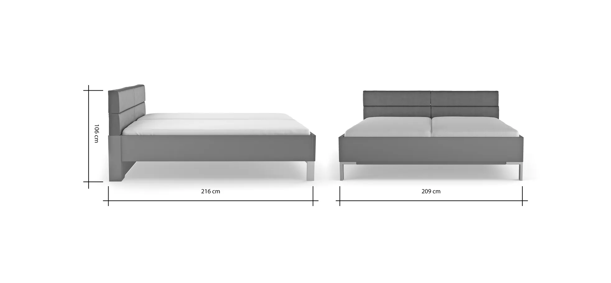 Überzeugend ist auch die moderne Farbkombination. Nickelfarbene Metallfüße unterstreichen die moderne Ausstrahlung. Mit hoher Bodenfreiheit bietet das Bett auf ausreichend Platz zum Wohlfühlen und Träumen.