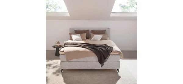 Das Boxspringbett Delia bietet dir einen unvergleichlichen Schlafkomfort mit einer großzügigen Liegefläche von ca. 180×200 cm. Der stilvolle Bezug aus hochwertigem Stoff in Ecru verleiht deinem Schlafzimmer eine elegante Note. Die stabilen, schwarzen Metallwinkelbeine sorgen nicht nur für einen modernen Look, sondern auch für die nötige Stabilität und Langlebigkeit. Dieses Bett kombiniert Funktionalität mit ansprechendem Design und schafft so eine perfekte Schlafumgebung für erholsame Nächte.