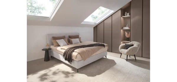 Das Boxspringbett Delia vereint Komfort und Stil mit einer Liegefläche von ca. 180×200 cm. Der elegante Stoff in Ecru sorgt für eine zeitlose Optik, während die stabilen, schwarzen Metallwinkelbeine für einen modernen Look und hohe Stabilität sorgen. Mit einer mittleren Matratze (60 – 80 kg) bietet es optimalen Schlafkomfort, ergänzt durch einen hochwertigen Kaltschaum-Topper, der Druckstellen vermeidet und für eine angenehme Nachtruhe sorgt.