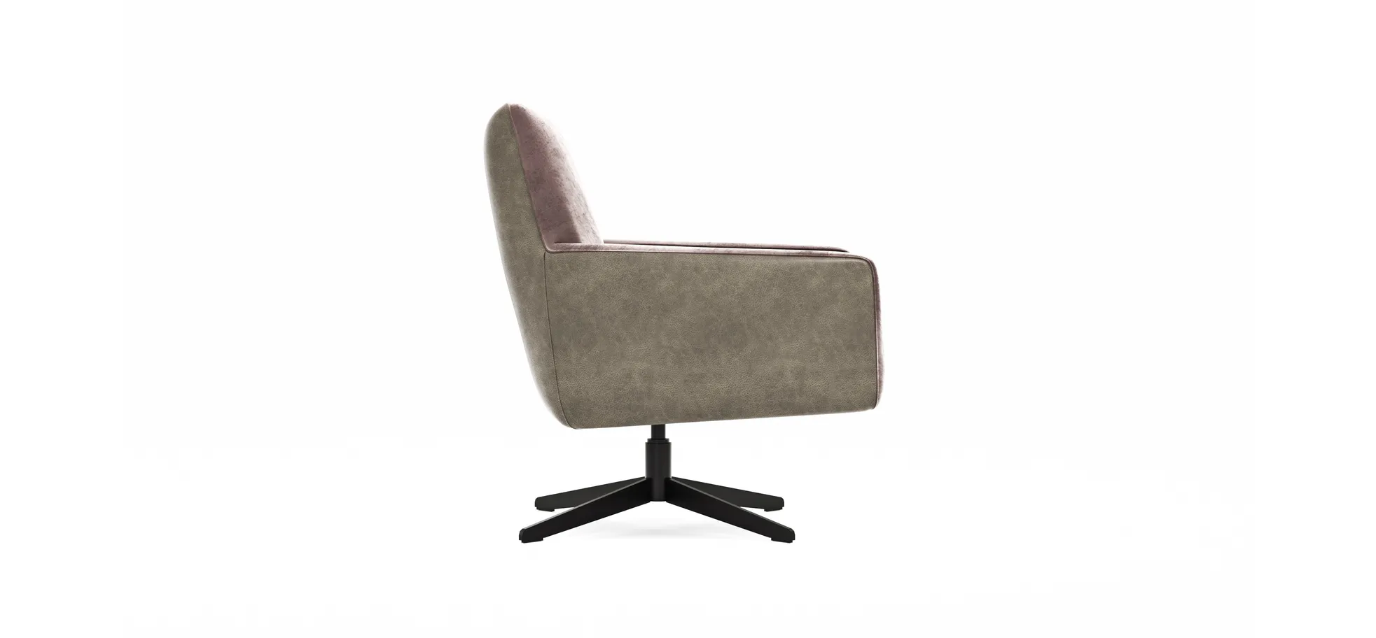 Drehsessel Matina – Größe M, Leder&Stoff, Dunkelbraun, Mauve
