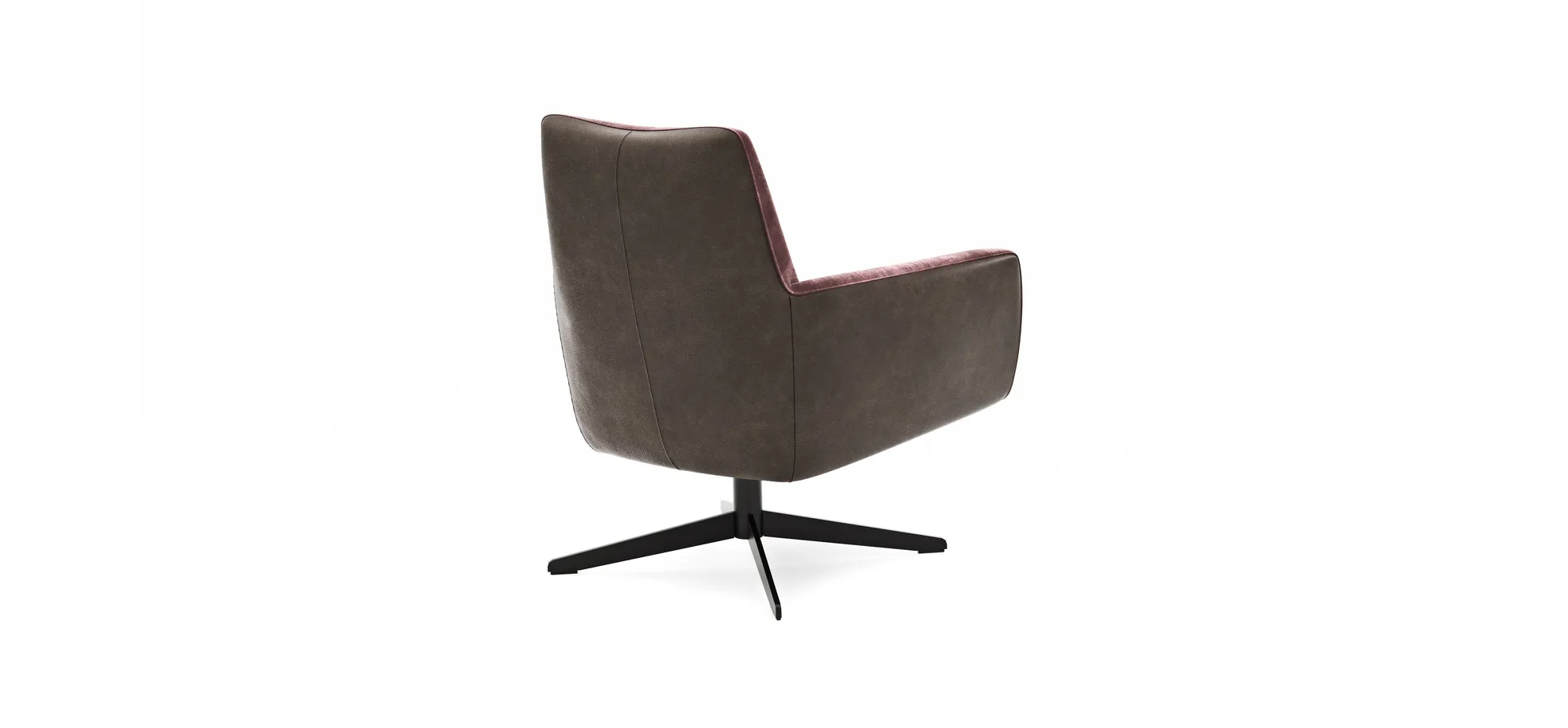 Drehsessel Matina – Größe M, Leder&Stoff, Nougat, Weinrot