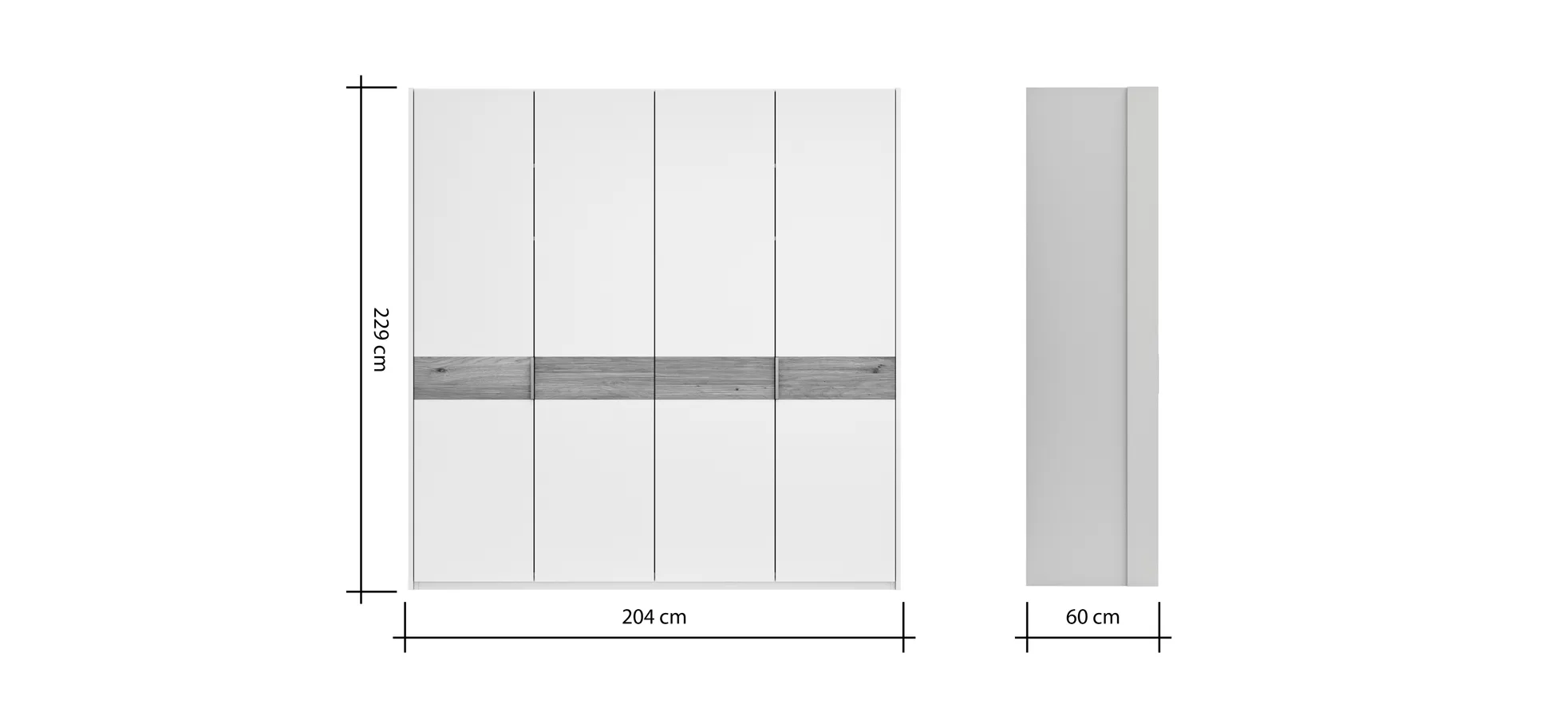 Drehtürenschrank Viana – B ca. 204 cm, Lack, Weiß, Riffholz, Wildeiche