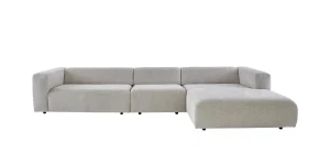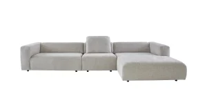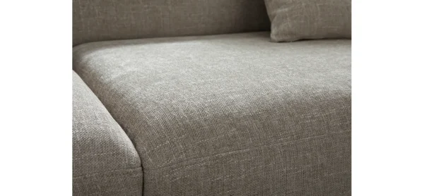 Entdecke das Ecksofa Caruso ? ein stilvolles 3-Sitzer-Modell mit einem praktischen Longchair rechts. Die elegante graubeige Stoffoberfläche fügt sich harmonisch in jedes Zuhause ein. Mit einer Sitzhöhe von ca. 40 cm und einer Belastbarkeit von bis zu 120 kg bietet es nicht nur Komfort, sondern auch Stabilität. Die Nosagfederung und der Kaltschaum sorgen für eine angenehme Sitzfläche, während die Gummigurte in der Rückenlehne zusätzlichen Halt bieten. Die schwarzen Kunststofffüße sind bodenstehend und mit Gleitern ausgestattet, was die Mobilität des Sofas erleichtert.