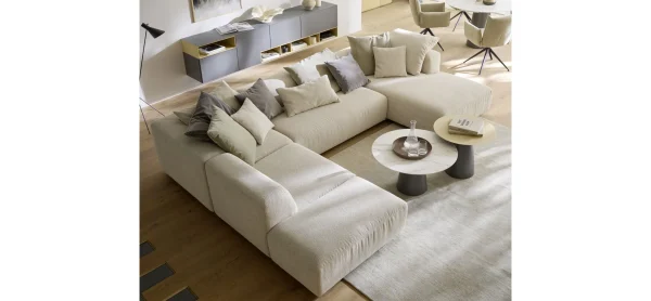Das Ecksofa Caruso in Ecru ist die perfekte Ergänzung für Ihr Wohnzimmer. Mit seinem stilvollen Design und der robusten Konstruktion bietet es nicht nur Komfort, sondern auch Langlebigkeit. Die Nosagfederung und der Kaltschaum-Sitz sorgen für ein angenehmes Sitzerlebnis, während die Gummigurte in der Rückenlehne zusätzlichen Halt bieten. Die schwarzen Kunststofffüße sind bodenstehend mit Gleitern, was die Handhabung erleichtert. Der 2-Sitzer mit Longchair rechts und inklusive Kissen ist ideal für entspannte Stunden.