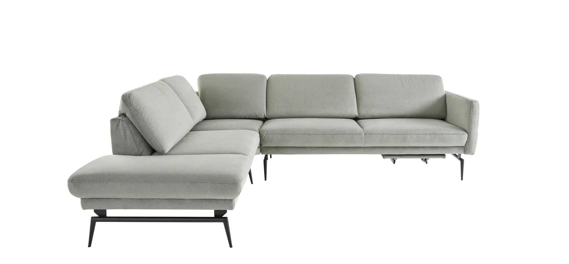 Ecksofa Estrela – Ecke links mit 2,5-Sitzer inkl. Rücken-/Armlehne verstellbar und Fußteil motortisch, Stoff, Schlammgrün