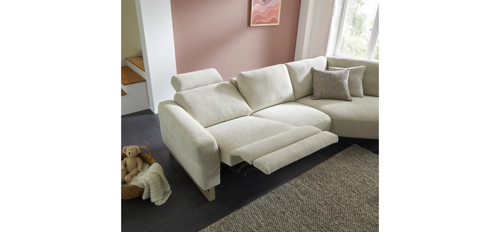 Das Ecksofa Leona bietet nicht nur eine beeindruckende Belastbarkeit von ca. 120 kg, sondern auch eine bequeme Sitzhöhe von ca. 45 cm. Die stilvollen Beine und das Gestell in Beige aus robustem Metall sorgen für Stabilität und Eleganz. Mit einer einzigartigen Kufenform fügt es sich harmonisch in jedes Wohnzimmer ein. Der Sitz ist mit Diolenwattenabdeckung, hochwertigem Schaumstoff und Stahlwellenfedern ausgestattet, während die Rückenlehne mit Diolenwattenabdeckung und Silikonschaum für zusätzlichen Komfort sorgt. Die motorisch verstellbare Relaxfunktion rundet das Gesamtpaket ab und macht es zum perfekten Rückzugsort.