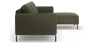 Das Ecksofa Leona ist ein stilvolles 3-Sitzer Modell mit einem praktischen Longchair auf der rechten Seite. In einem eleganten Braungrün fügt es sich perfekt in jedes Wohnzimmer ein. Mit einer Belastbarkeit von ca. 120 kg und einer Sitzhöhe von ca. 45 cm bietet es nicht nur Komfort, sondern auch Stabilität. Die Winkelfüße aus dunkelbraunem Metall verleihen dem Sofa einen modernen Look. Die Sitzfläche kombiniert Diolenwattenabdeckung, Schaumstoff und Stahlwellenfedern für eine angenehme Sitzqualität, während die Rückenlehne mit Silikonschaum und Diolenwattenabdeckung zusätzlichen Komfort bietet.
