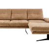 Entdecke das Ecksofa Lucero 2.0, einen stilvollen 2-Sitzer mit Longchair auf der rechten Seite. Diese kuschelige Couch bietet höchsten Komfort mit einer Sitztiefe, die sich verstellen lässt, und einem praktischen Drehsitz. Der Sitz besteht aus hochwertigem Kaltschaum und Stahlwellenfedern, während die Rückenlehne mit Gummigurten und Schaumstoff ausgestattet ist, um optimalen Halt zu bieten. Mit einer Belastbarkeit von ca. 120 kg und einer Sitzhöhe von ca. 45 cm ist dieses Sofa perfekt für entspannte Stunden. Die eleganten Füße aus schwarzem Metall im Kufendesign setzen zudem einen modernen Akzent.