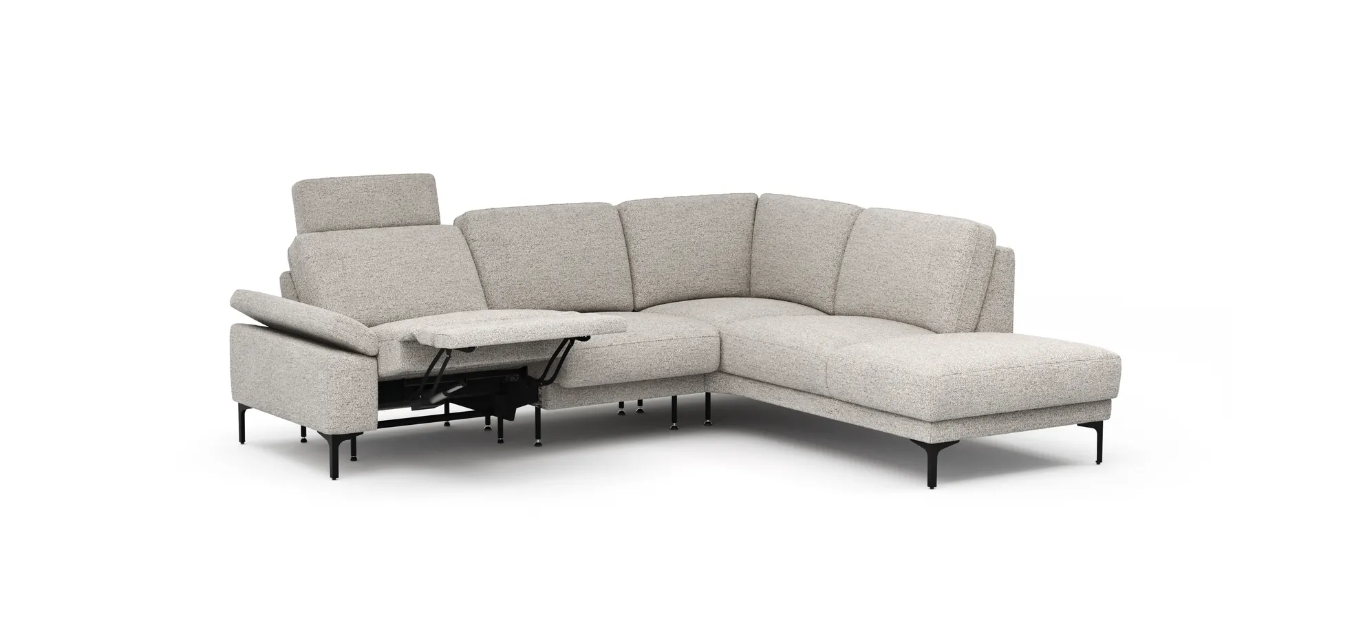Ecksofa Matero – 2-Sitzer mit Ecke rechts inkl. Relaxfunktion motorisch und Sitzvorzug, Stoff, Hellgrau
