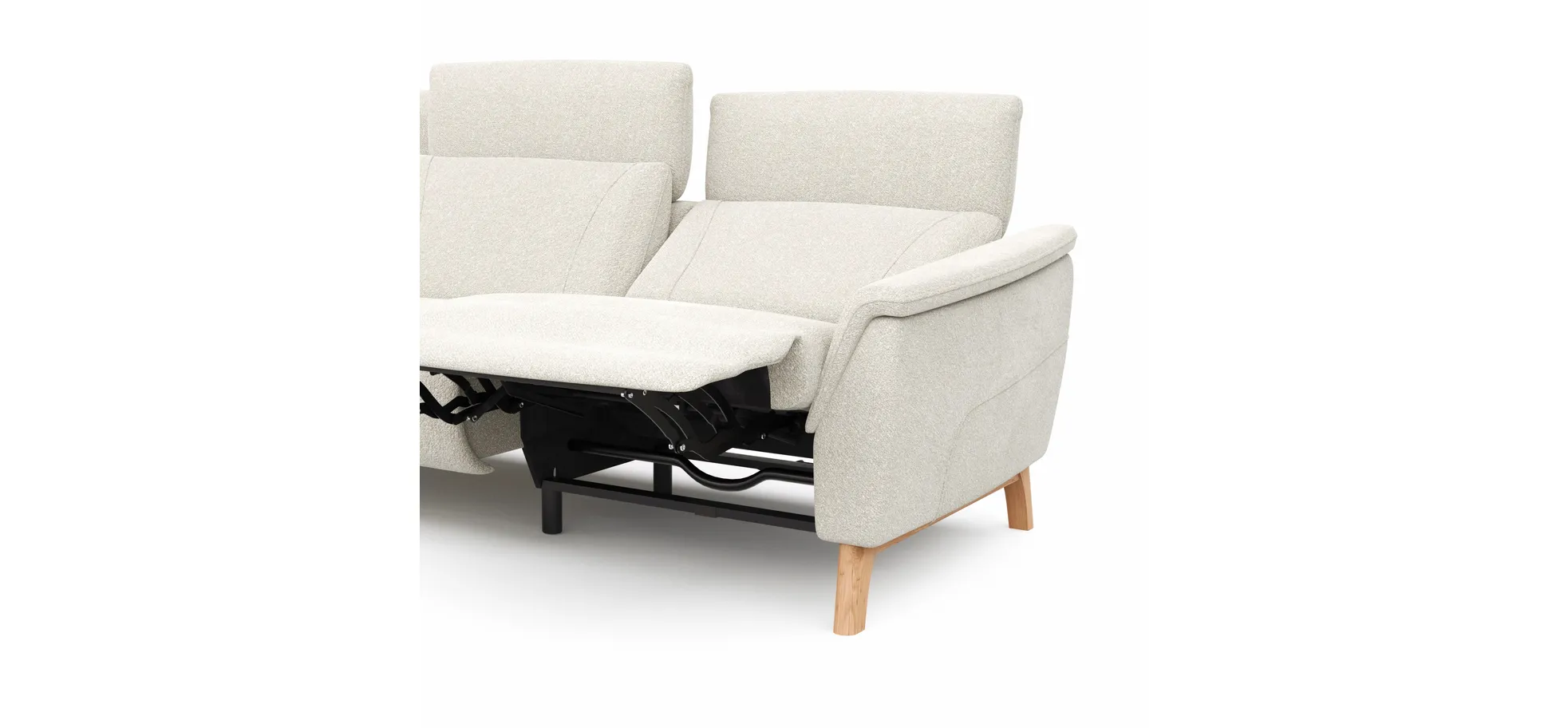 Das Ecksofa Nevin von Natura Home überzeugt durch seine stilvolle Eleganz und hohe Funktionalität. Mit der motorisch Relaxfunktion bietet es ultimativen Komfort. Die Sitzfläche mit Federkern und Stahlwellenfedern sorgt für langlebige Unterstützung, während die gummigurt- und kaltschaumgepolsterte Rückenlehne zusätzlichen Komfort liefert. Die massiven Wildeiche-Kufen in Holzfarben verleihen dem Sofa eine natürliche und robuste Ausstrahlung. Mit einer Belastbarkeit von ca. 120 kg und einer Sitzhöhe von ca. 46 cm ist es ideal für entspannte Stunden.