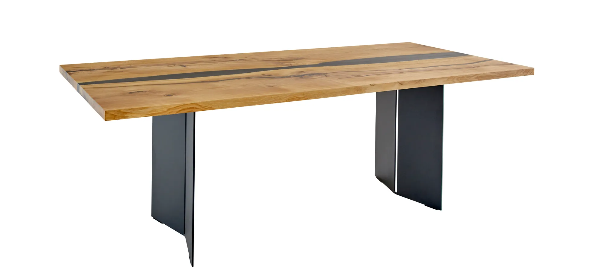 Der Esstisch Nera von Contur beeindruckt durch seine schlichte Eleganz. Der Tisch bietet mit einer Länge von ca. 220 cm und einer Breite von ca. 110 cm ausreichend Platz für gesellige Runden. Die massive Asteiche-Platte besticht durch ihre natürliche Schönheit und die gerade Kante verleiht ihr eine moderne Note. Die solide Konstruktion wird durch schwarze Metallbeine im Wangenfuß-Design unterstrichen. Mit einer Höhe von ca. 76 cm und einer Plattenstärke von ca. 4 cm ist dieser Tisch sowohl stabil als auch stilvoll. Ein echtes Highlight für Ihr Esszimmer.