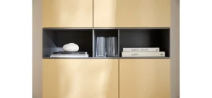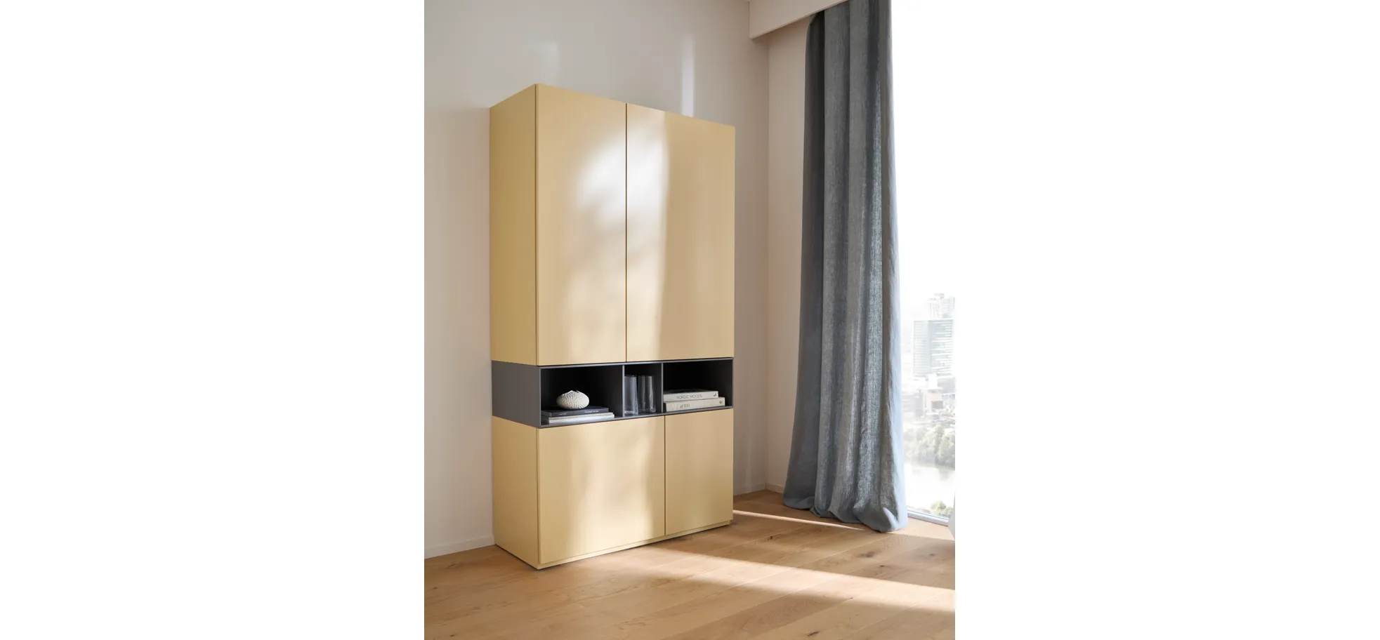 Das Highboard 3900 von Contur kombiniert modernes Design mit praktischer Funktionalität. Mit einer Höhe von ca. 189 cm und einer Tiefe von ca. 45 cm bietet es viel Stauraum hinter 4 grifflosen Türen, die sich dank der Push-to-Open-Technologie mühelos öffnen lassen. Die integrierte Dämpfung sorgt für sanftes Schließen der Türen. Die elegante Lackoberfläche in Mandel verleiht Ihrem Raum eine warme Note, während die bodenstehenden Füße mit Gleitern für Stabilität und Flexibilität sorgen.