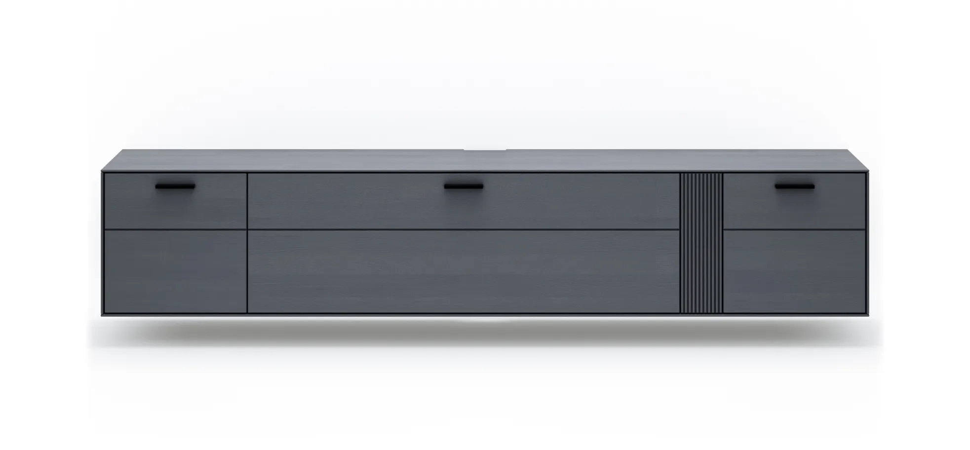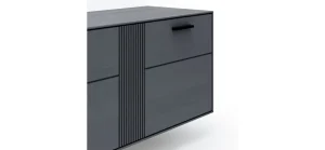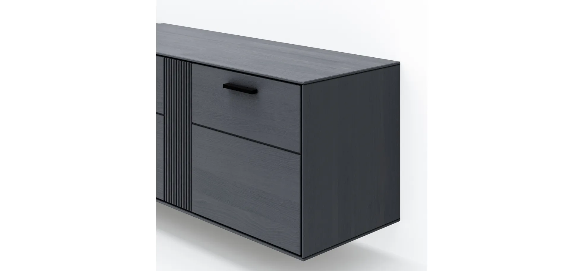 Das Lowboard Estana von Global Select vereint stilvolles Design und Funktionalität. Mit ca. 46 cm Höhe und ca. 40 cm Tiefe bietet es eine kompakte Lösung für dein Wohnzimmer. Die Kombination aus massivem Eichenholz und anthrazitfarbenem Korpus verleiht deinem Raum eine moderne Eleganz. Die zwei Türen und die Klappe bieten großzügigen Stauraum, während die schwarzen Metall-Griffleisten das Design abrunden. Dieses Möbelstück ist nicht nur optisch ansprechend, sondern auch langlebig und praktisch.