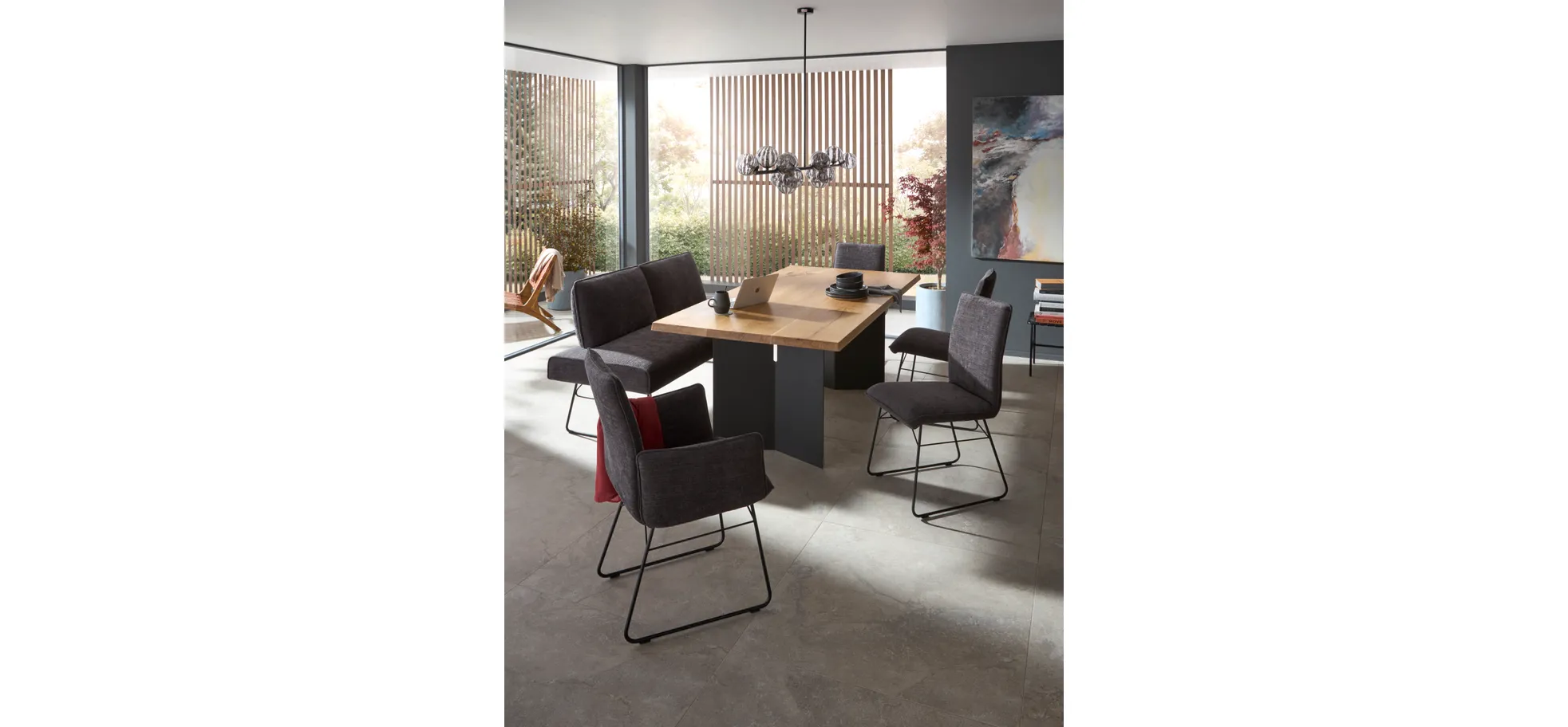 Die Polsterbank Elda von Global Select, mit einer Breite von ca. 184 cm, bringt Stil und Komfort in dein Zuhause. Mit einer komfortablen Sitzhöhe von ca. 51 cm, ist sie perfekt zum Entspannen und Verweilen. Die anthrazitfarbene Stoffpolsterung und die Sattlernaht geben der Bank ein edles Aussehen.