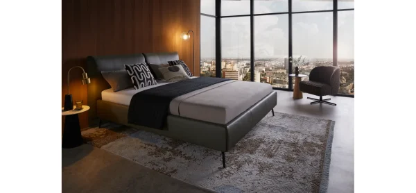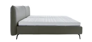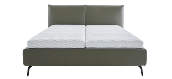 Das Polsterbett Delia vereint modernes Design mit einem hohen Maß an Komfort. Die Liegefläche von ca. 180×200 cm bietet ausreichend Platz für erholsame Nächte. Die elegante olivgrüne Lederoberfläche verleiht Ihrem Schlafzimmer einen Hauch von Luxus. Die stabilen schwarzen Winkelfüße aus Metall sorgen für eine solide Grundlage und unterstreichen das zeitgemäße Erscheinungsbild des Bettes.