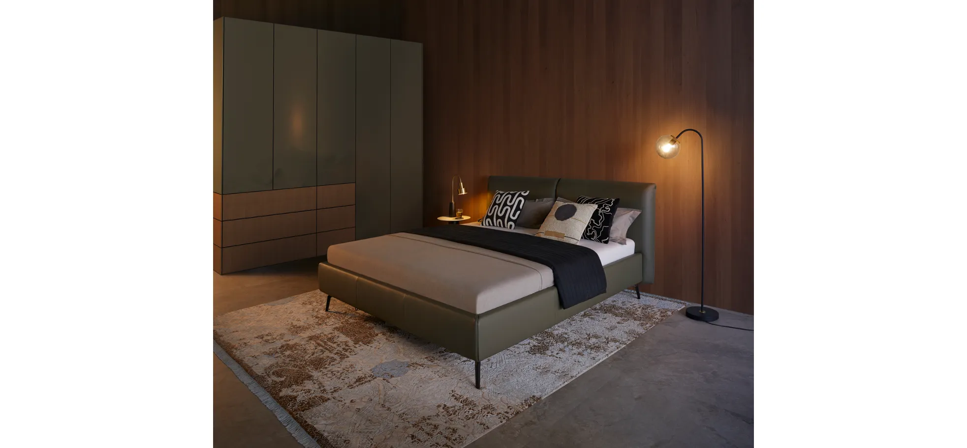 Das Polsterbett Delia von Contur vereint modernes Design mit funktionalem Komfort. Mit einer großzügigen Liegefläche von ca. 180×200 cm bietet es genügend Platz für erholsame Nächte. Der elegante Bezug aus Leder sorgt für eine ansprechende Optik und ist gleichzeitig pflegeleicht. Die stabilen, schwarzen Metallwinkelfüße verleihen dem Bett nicht nur einen zeitgemäßen Look, sondern garantieren auch eine hohe Stabilität und Langlebigkeit.