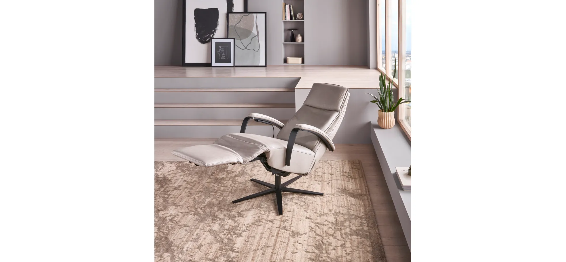 Der Relaxsessel Avela Relax in Größe L bietet dir unvergleichlichen Komfort mit verstellbarem Kopf-, Fußteil und Rückenlehne. Die strapazierfähige Konstruktion hat eine Belastbarkeit von ca. 120 kg und sorgt für optimale Stabilität. Der Sessel ist mit hochwertigem Kaltschaum und Stahlwellenfedern ausgestattet, die ein angenehmes Sitzgefühl garantieren. Das moderne Design in Steingrau und die schwarzen, sternförmigen Metallfüße verleihen deinem Raum eine stilvolle Note.