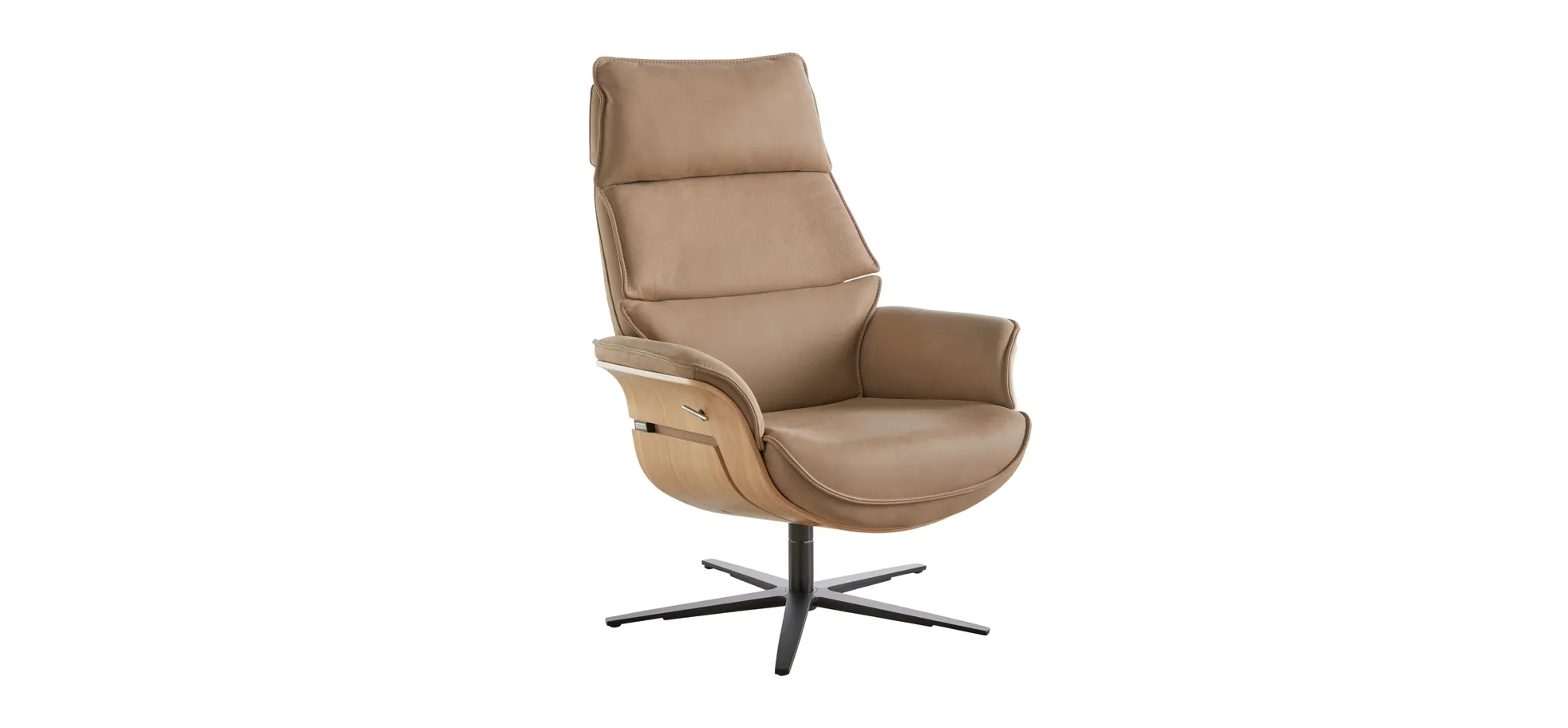 Entspanne dich stilvoll mit dem Relaxsessel Perano von Contur. Der drehbare Sessel aus hochwertigem Leder in Beige passt perfekt zu jedem modernen Interieur. Die ca. 43 cm hohe Sitzfläche aus Kaltschaum mit Watteabdeckung sorgt für angenehmen Komfort. Der sternförmige Metallfuß in Schwarz bietet Stabilität und eine Belastbarkeit von ca. 120 kg. Die Kombination aus Wildeiche und Leder verleiht dem Sessel eine zeitlose Eleganz, die jedes Wohnzimmer aufwertet. Ohne aufdringlich zu wirken, vereint der Sessel Funktionalität und Stil in Perfektion.