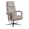 Der Relaxsessel Rafaela 2.0 bietet dir höchsten Komfort mit einem verstellbaren Kopfteil, einer flexiblen Rückenlehne und einem anpassbaren Fußteil. Die Sitzhöhe beträgt ca. 47 cm und sorgt für eine ideale Sitzposition. Der Sessel ist in einem eleganten Champagner-Leder gehalten und wird von einem stabilen, sternförmigen Gestell aus schwarzem Metall unterstützt. Die Sitzfläche besteht aus hochwertigem Kaltschaum und Stahlwellenfedern, während die Rückenlehne mit Kaltschaum und Gummigurten ausgestattet ist. Genieße entspannende Momente in diesem stilvollen Möbelstück von Global Family.