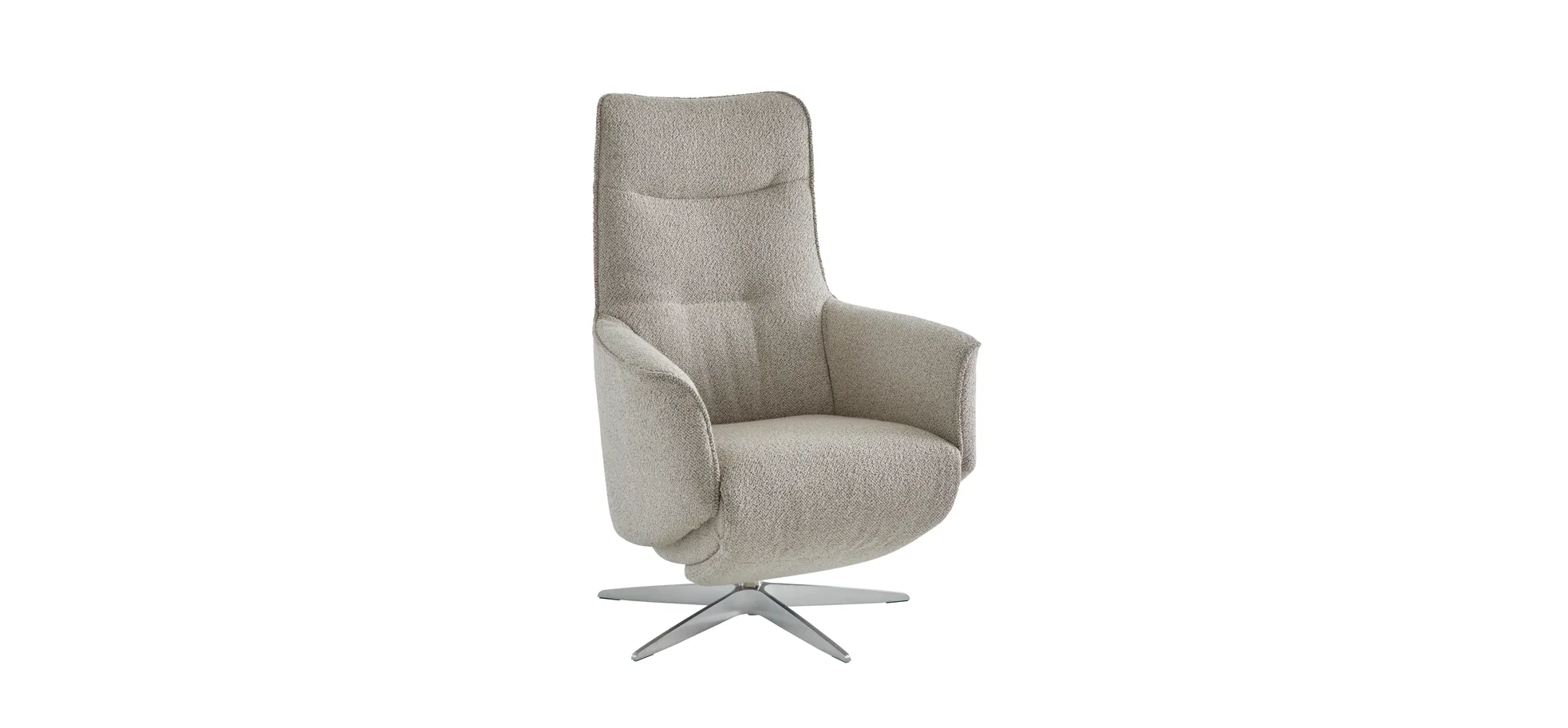 Entspanne stilvoll im Relaxsessel Riposo von Contur. Mit einer Sitzhöhe von ca. 44 cm und einer Belastbarkeit von bis zu 120 kg bietet er optimalen Komfort und Stabilität. Die elegante Edelstahloptik der sternförmigen Füße und des Gestells sorgt für ein modernes Ambiente. Der Sessel ist mit hochwertigem Kaltschaum und Nosagfederung ausgestattet, die sowohl Sitz als auch Rückenlehne unterstützen. Die motorische Relaxfunktion ermöglicht es dir, die perfekte Position für Ihre Auszeit zu finden und die graubeige Stoffoberfläche fügt sich harmonisch in Ihr Zuhause ein.