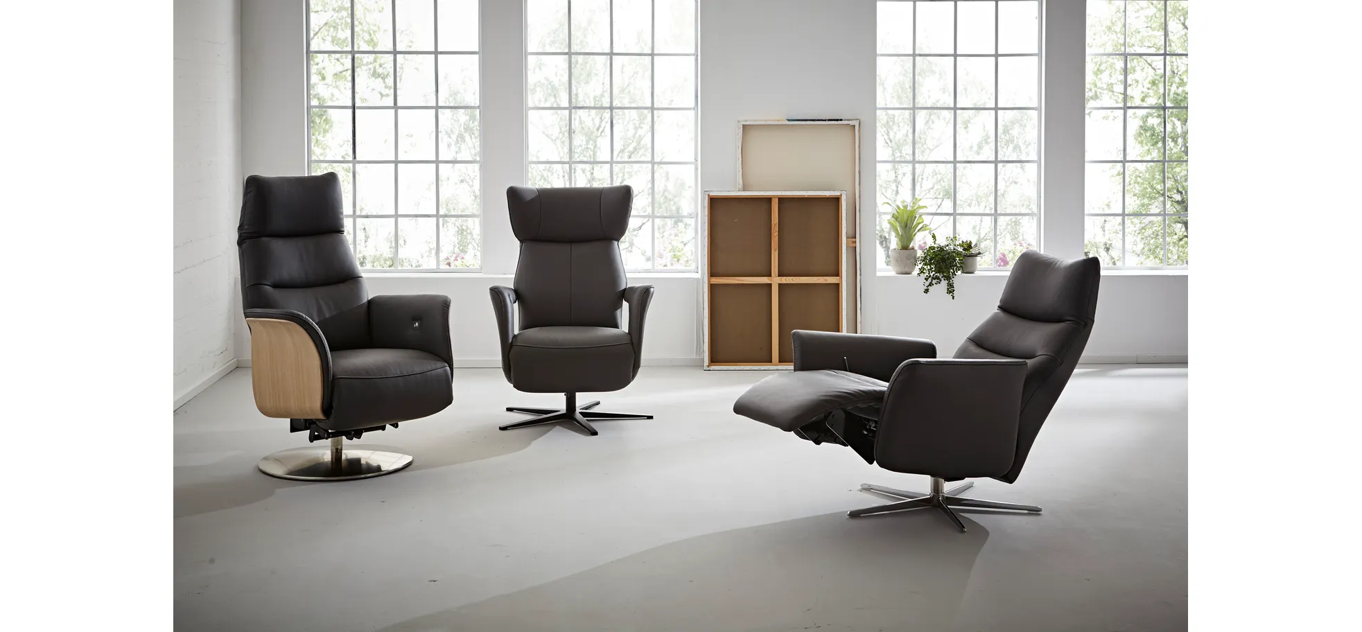- Leder anthrazit mit Holzblende Eiche