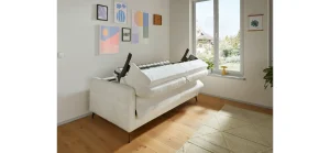Das Schlafsofa Laredo ist der perfekte Begleiter für gemütliche Abende und entspannte Nächte. Mit einer Sitzhöhe von ca. 48 cm bietet es optimalen Komfort. Das stilvolle offwhite Stoffdesign harmoniert hervorragend mit den eleganten, schwarzen Winkelfüßen aus Metall. Die Federkernpolsterung und die Stahlwellenfedern sorgen für eine angenehme Sitz- und Liegefläche, während die Rückenlehne mit Watteabdeckung und Schaumstoff zusätzlichen Komfort bietet. Dieses 2,5-Sitzer Schlafsofa vereint Funktionalität und modernes Design, ideal für dein Zuhause.