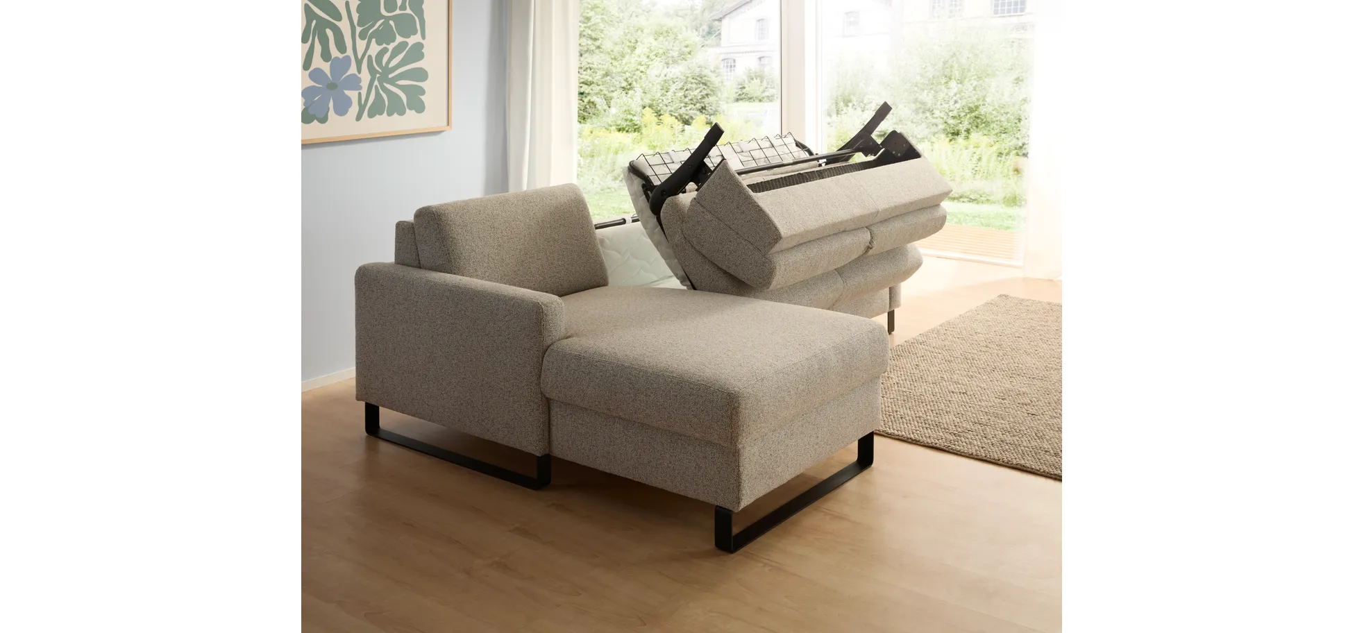 Das Schlafsofa Laredo ist die perfekte Lösung für jeden Raum. Mit einer Sitzhöhe von ca. 48 cm bietet es komfortablen Sitz- und Liegekomfort. Die eleganten schwarzen Metallkufen verleihen dem Sofa nicht nur Stabilität, sondern auch einen modernen Look. Die Federkern- und Stahlwellenfeder-Konstruktion sorgt für optimalen Komfort, während die Watteabdeckung sowohl auf dem Sitz als auch in der Rückenlehne für ein behagliches Gefühl sorgt. Dank der praktischen Schlaffunktion mit Bettkasten ist es ideal für Gästeübernachtungen.