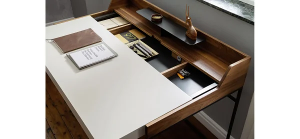 Die Funktionalitäten, wie etwa die ausziehbare Arbeitsplatte sowie der praktische USB-Anschluss des Schreibtischs Contur® Cantona, werden durch ansprechende Gestaltung unterstützt.