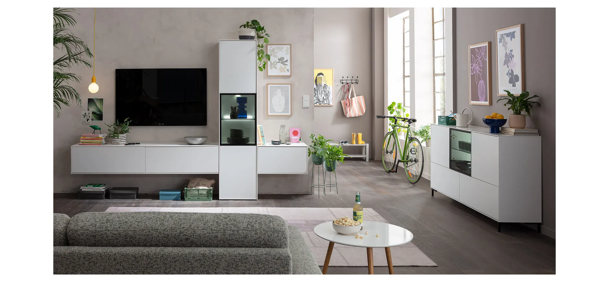 Sideboard Medio – inkl. Beleuchtung, Lack, Weiß