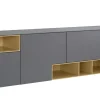 Entdecke das stilvolle Sideboard Venzone von Contur. Mit seinen ca. 216 cm Breite, ca. 95 cm Höhe und ca. 52 cm Tiefe bietet es großzügigen Stauraum hinter vier Türen. Die hellgraue Lackierung verleiht Ihrem Raum eine elegante Note. Die eckigen Metallfüße und das Gestell sorgen für Stabilität und ein modernes Design. Griffprofile aus Metall unterstreichen die hochwertige Verarbeitung. Dieses Sideboard ist die perfekte Ergänzung für Ihr Zuhause und verbindet Funktionalität mit zeitgemäßem Stil.