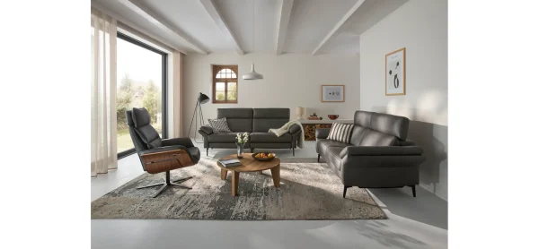 Das Sofa Atella von Contur ist der perfekte 2,5-Sitzer für Ihr Zuhause. Mit einer Belastbarkeit von ca. 120 kg bietet es sicheren Komfort für entspannte Stunden. Die Sitzhöhe von ca. 48 cm sorgt für eine angenehme Sitzposition. Die Kombination aus Federkern, Kaltschaum und Stahlwellenfedern garantiert ein hervorragendes Sitzgefühl, während die Kaltschaum-Rückenlehne zusätzlichen Halt bietet. Das stilvolle Design in Anthrazit und die eleganten schwarzen Winkelfüße aus Metall verleihen Ihrem Raum eine moderne Note.