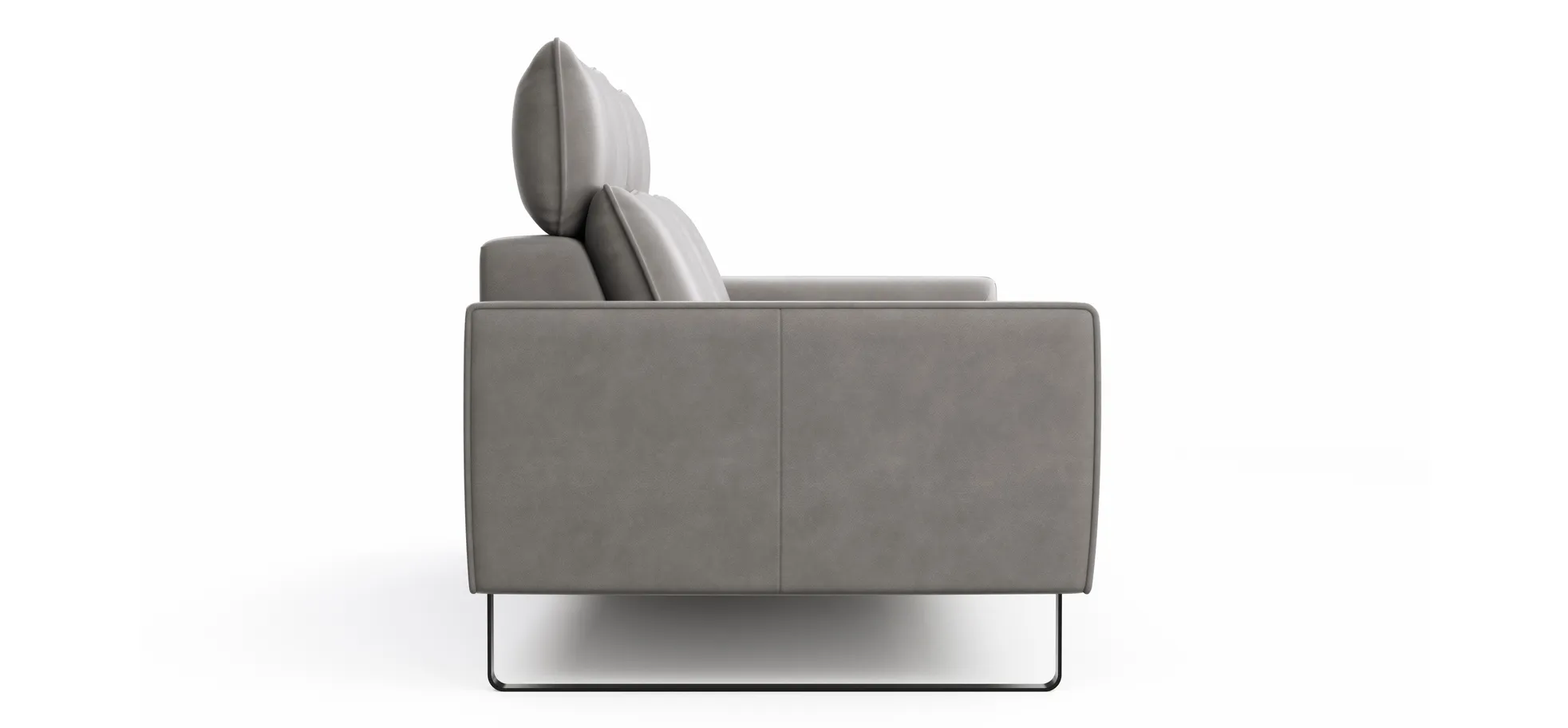 Das Sofa Avela von Global Select ist ein eleganter 3-Sitzer mit verstellbarem Kopfteil, das Komfort und Stil vereint. Mit einer Belastbarkeit von ca. 120 kg und einer Sitzhöhe von ca. 46 cm passt es sich perfekt an deine Bedürfnisse an. Die Füße und das Gestell sind aus robustem Metall in klassischem Schwarz und bieten eine moderne Kufenform, die deinem Raum einen zeitgemäßen Look verleiht. Der Bezug aus hochwertigem Leder in Steingrau sorgt nicht nur für eine ansprechende Optik, sondern auch für Langlebigkeit und Pflegeleichtigkeit.