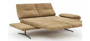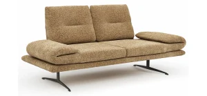 Das Sofa Lucero 2.0 ? 2?Sitzer in Cognac-Stoff von Global Select verbindet elegantes Design mit traufgenauem Komfort: Kaltschaum und Stahlwellenfedern im Sitz sorgen für belastbaren Sitzkomfort, die Rückenlehne mit Gummigurten und Schaumstoff passt sich ergonomisch an. Drehsitz, Rollout?Armlehne und verstellbare Sitztiefe bieten flexible Nutzungsmöglichkeiten. Schwarzes Kufen?Gestell aus Metall. Sitzhöhe ca. 45 cm, Belastbarkeit 120 kg.