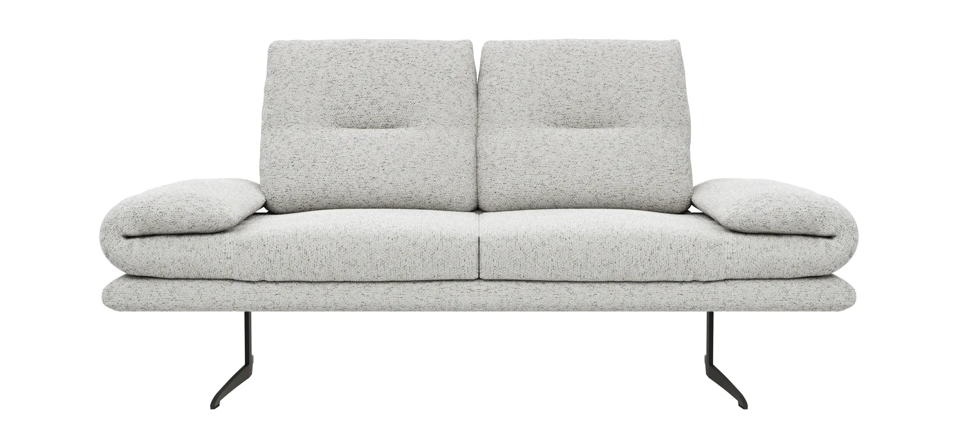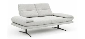 Global Select Sofa Lucero 2.0 ? kompakter 2?Sitzer in Offwhite, ideal, wenn du wenig Platz hast. Der bequeme Sitz aus Kaltschaum mit Stahlwellenfedern bietet ausgewogene Stützung; die Rückenlehne mit Gummigurten und Schaumstoff sorgt für flexible Unterstützung. Drehsitz, Rollout?Armlehne und verstellbare Sitztiefe ermöglichen individuelle Sitzpositionen. Das robuste Metallgestell in schwarzer Kufenform verbindet Stabilität mit modernem Look; Belastbarkeit 120 kg. Sitzhöhe ca. 45 cm.