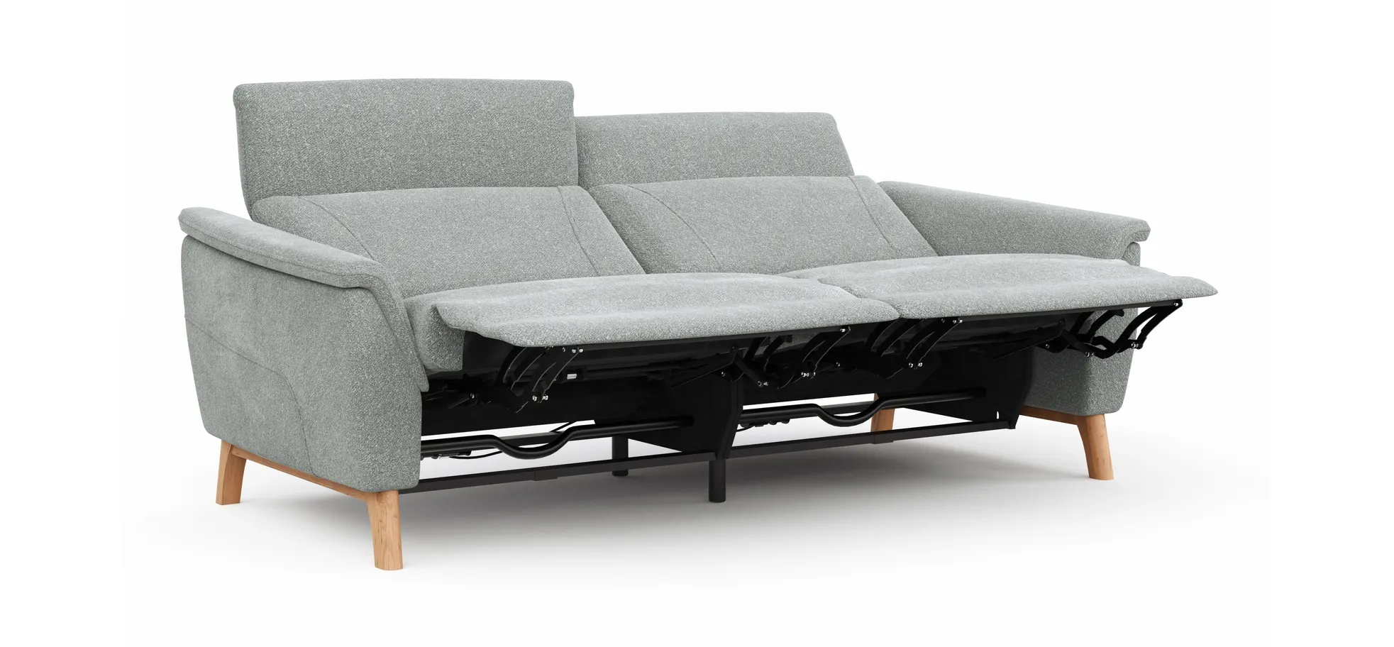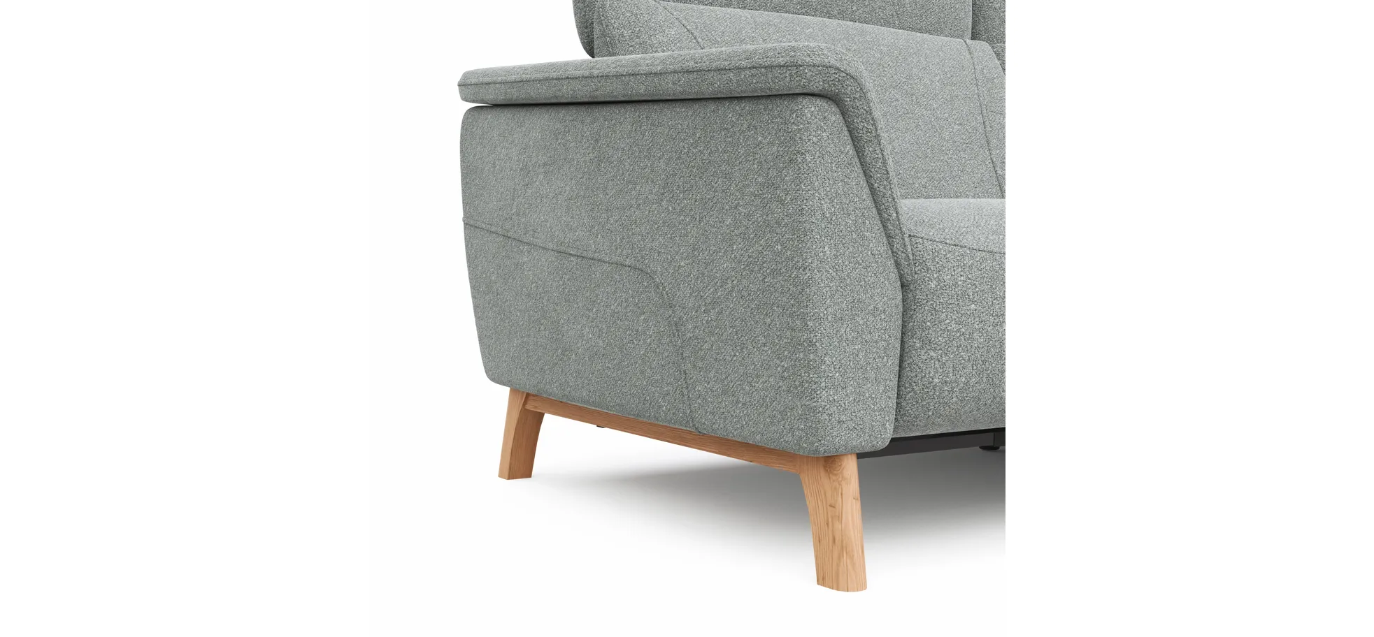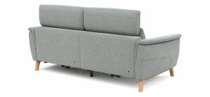 Das Sofa Nevin von Natura Home bietet Dir höchsten Komfort mit seiner motorisierten Relaxfunktion und Kopfteilverstellung. Der silbergraue Stoff verleiht Deinem Raum eine elegante Note, während das Gestell aus massivem Wildeichenholz mit kufenförmigen Beinen in Holzfarbe für Stabilität sorgt. Genieße optimalen Sitzkomfort dank des Federkerns und der Stahlwellenfedern, während die Rückenlehne mit Gummigurten und Kaltschaum optimalen Halt bietet. Mit einer Belastbarkeit von ca. 120 kg (pro Sitz) und einer Sitzhöhe von ca. 46 cm, ist dieses 3-Sitzer-Sofa eine perfekte Ergänzung für Dein Zuhause.