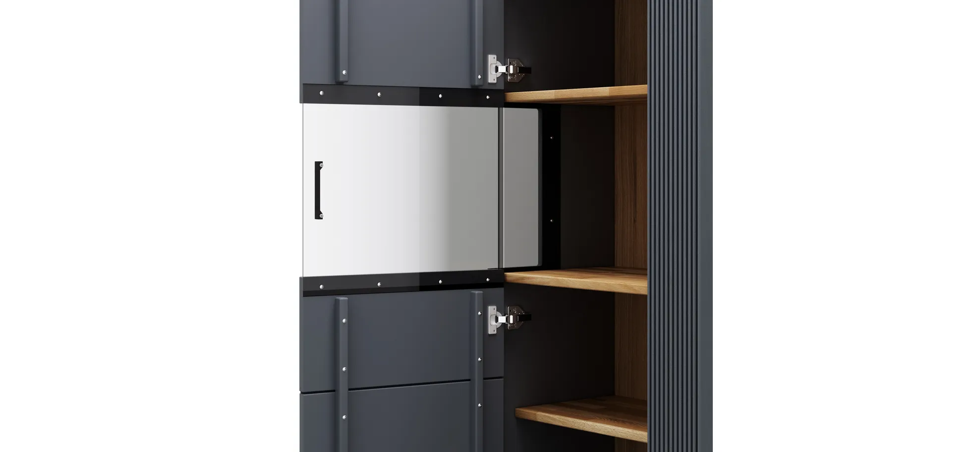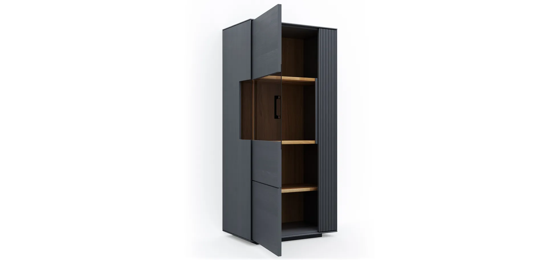 Die Vitrine Estana von Global Select vereint elegante Ästhetik mit praktischer Funktionalität. Gefertigt aus massivem Eichenholz, strahlt sie in einem stilvollen Anthrazitton. Mit ca. 135 cm Höhe und ca. 40 cm Tiefe bietet sie reichlich Platz, um Deine Lieblingsstücke stilvoll zu präsentieren. Die hochwertige Verarbeitung und das zeitlose Design machen die Vitrine zu einem langlebigen Begleiter in Deinem Zuhause. Ihr minimalistischer Charme fügt sich nahtlos in verschiedenste Wohnstile ein und unterstreicht Deine individuelle Einrichtung.