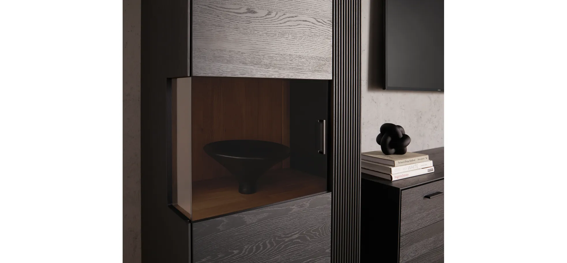 Die Vitrine Estana von Global Select vereint elegante Ästhetik mit praktischer Funktionalität. Gefertigt aus massivem Eichenholz, strahlt sie in einem stilvollen Anthrazitton. Mit ca. 135 cm Höhe und ca. 40 cm Tiefe bietet sie reichlich Platz, um Deine Lieblingsstücke stilvoll zu präsentieren. Die hochwertige Verarbeitung und das zeitlose Design machen die Vitrine zu einem langlebigen Begleiter in Deinem Zuhause. Ihr minimalistischer Charme fügt sich nahtlos in verschiedenste Wohnstile ein und unterstreicht Deine individuelle Einrichtung.