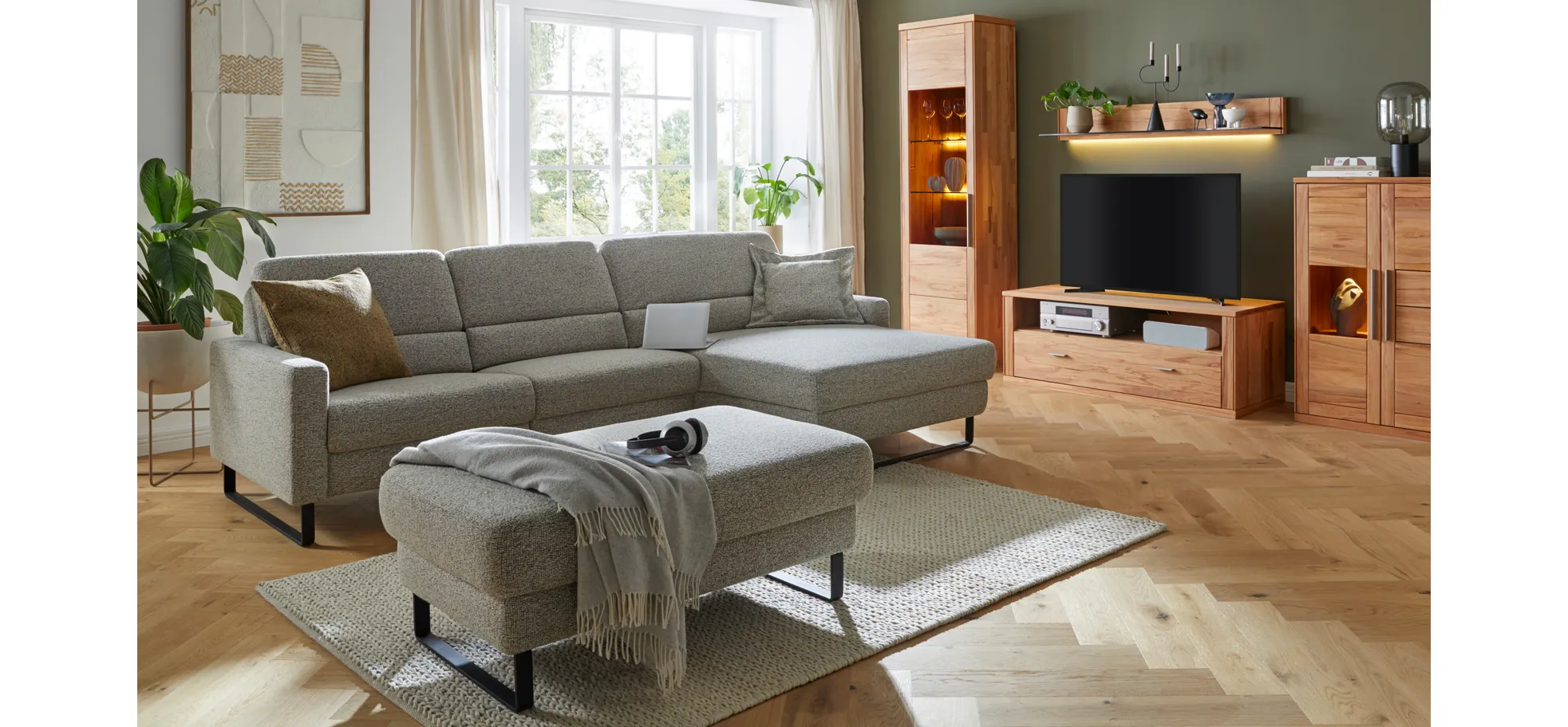Wohnwand Faro 6.0 – inkl. Beleuchtung, Kernbuche massiv, natur geölt