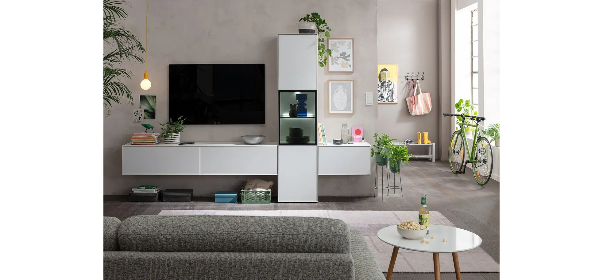 Wohnwand Medio – inkl. Beleuchtung, Lack, Weiß